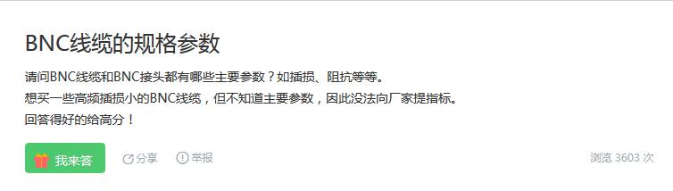 在百度问答上,有一个用户询问了一些关于bnc线缆与bnc接头规格参数的相关问题,下面德索五金电子就将此则问答信息做了一个归整,分享给用户查阅。