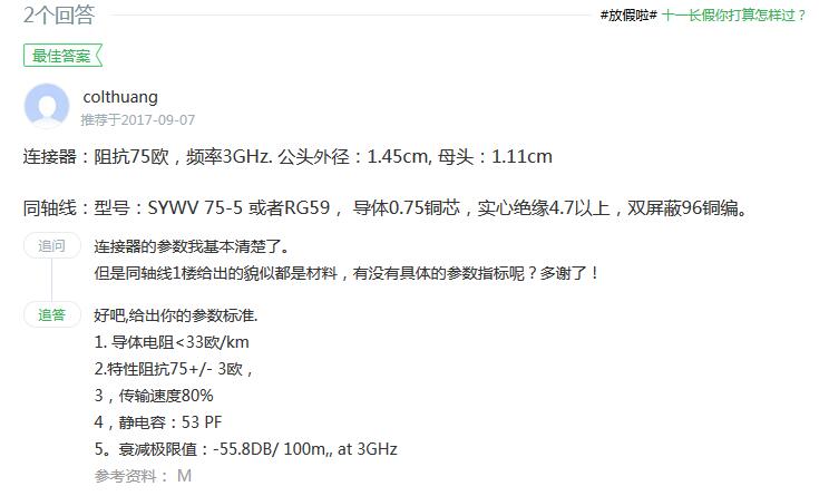 连接器的参数我基本清楚了。但是同轴线1楼给出的貌似都是材料,有没有具体的参数指标呢?多谢了!