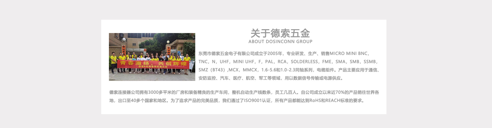 阅读完之后,您对于bnc接头焊接方法应该清楚了,如果您对于bnc接头焊接方法还有疑惑或者不明白的地方,可以发送邮件至dosin2005@dosin-china.com,我们的工程师会及时解答您的问题。采购及定制BNC接头、bnc接口、bnc转接头、bnc线材等产品,选择德索五金电子,十三年的BNC接头生产经验,ISO认证,值得用户的信赖。