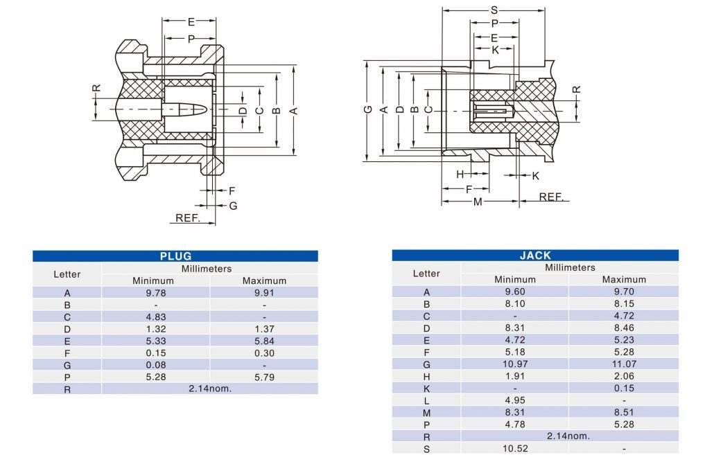 中心接触电阻:≦ 1.5 mΩ (Milliohms max.)
