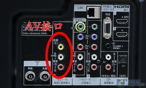 由于AV输出仍然是将亮度与色度混合的视频信号,所以依旧需要显示设备进行亮度和色彩分离,并且解码才能成像。这样的做法必然对画质会造成损失,所以AV接口的画质依然不能让人满意。在连接方面非常的简单,只需将3种颜色的AV线与电视端的3种颜色的接口对应连接即可。