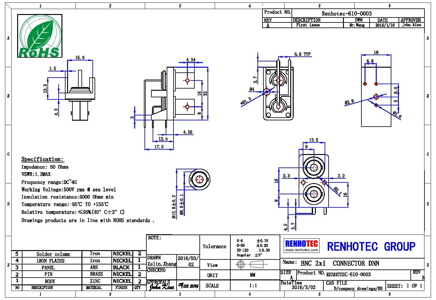 频率范围 | 50 ohm 为 0~4 GHz |