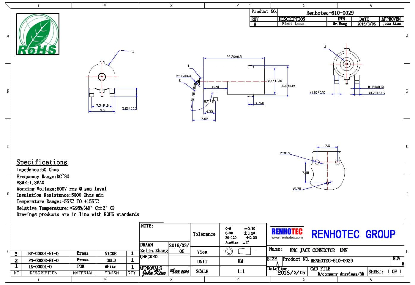 中心接触电阻 | ≦ 1.5 mΩ (Milliohms max.) |