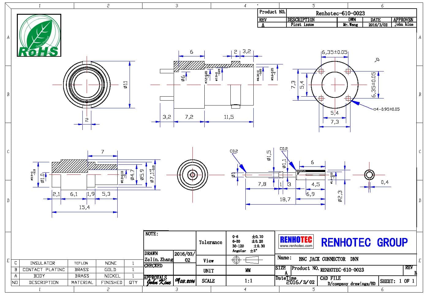 BNC连接器 5引脚直式射频同轴 PCB板端