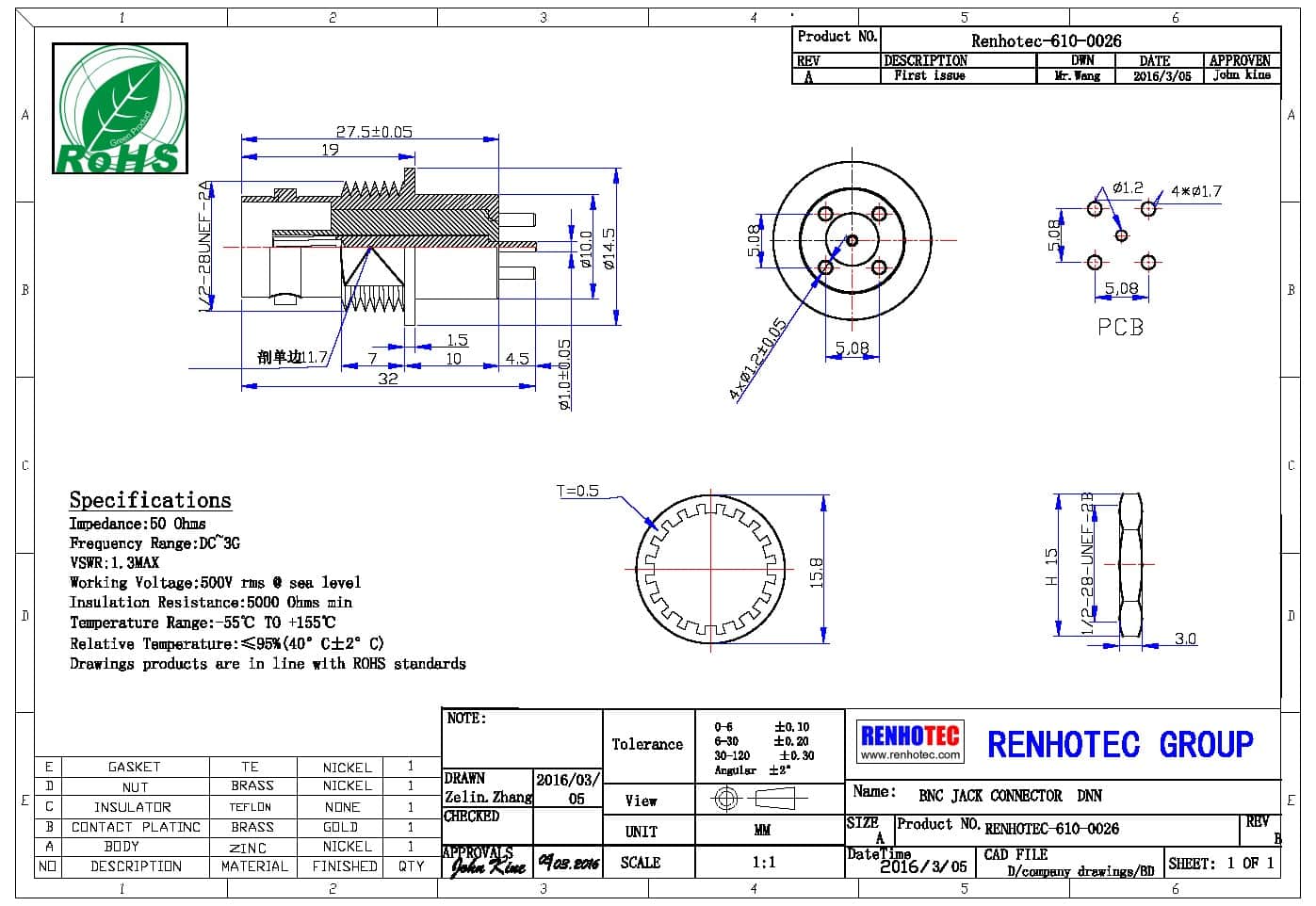 bnc同轴连接器 直式穿墙 母头锌合金 PCB板
