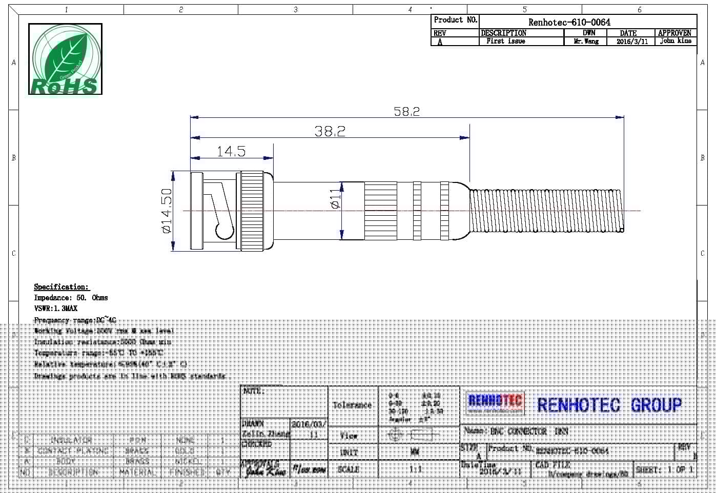 电压驻波比 | 直式 ≦ 1.22/3GHz / 弯式≦ 1.30/3GHz |