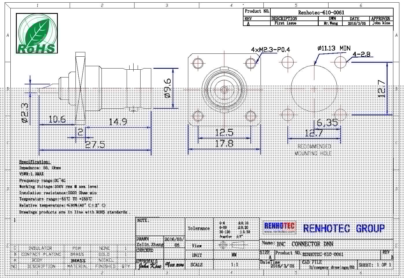 4孔方形法兰母头直式 锌合金 BNC射频同轴连接器