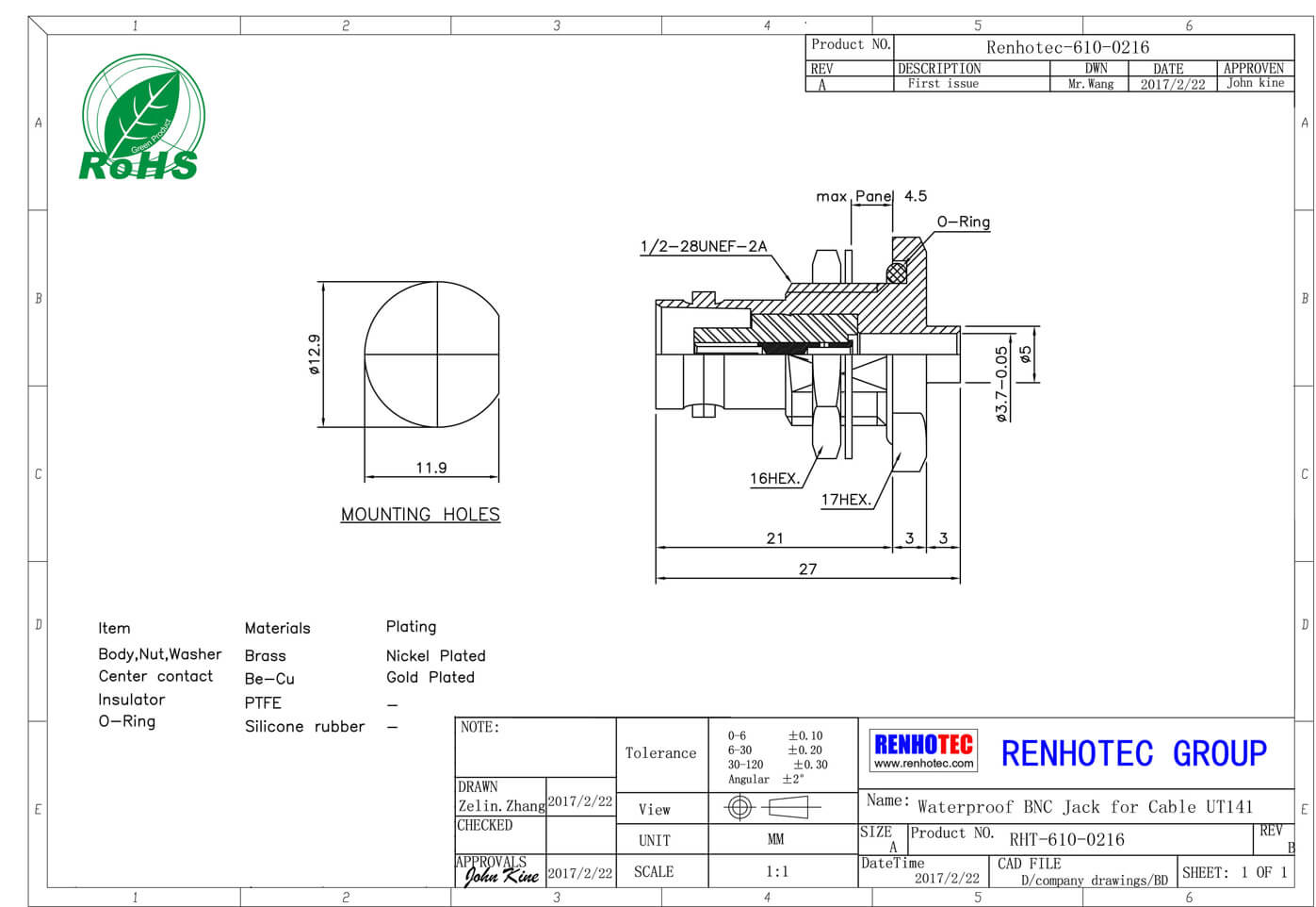 温度范围 | Teflon -55℃~+155℃ / POM -40℃~+60℃ |