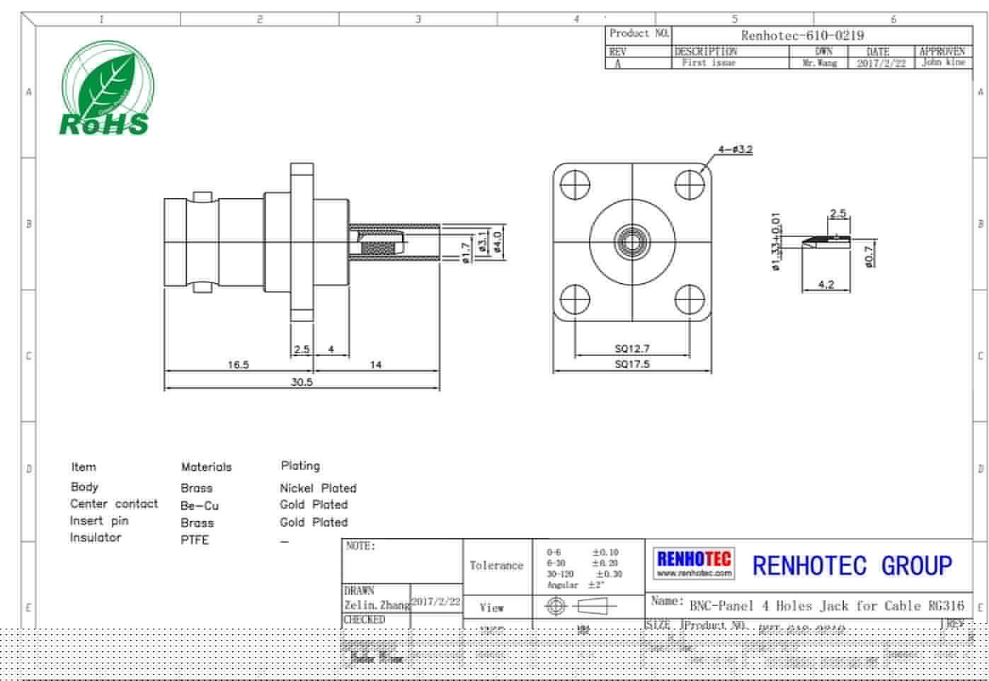 中心接触电阻 | ≦ 1.5 mΩ (Milliohms max.) |