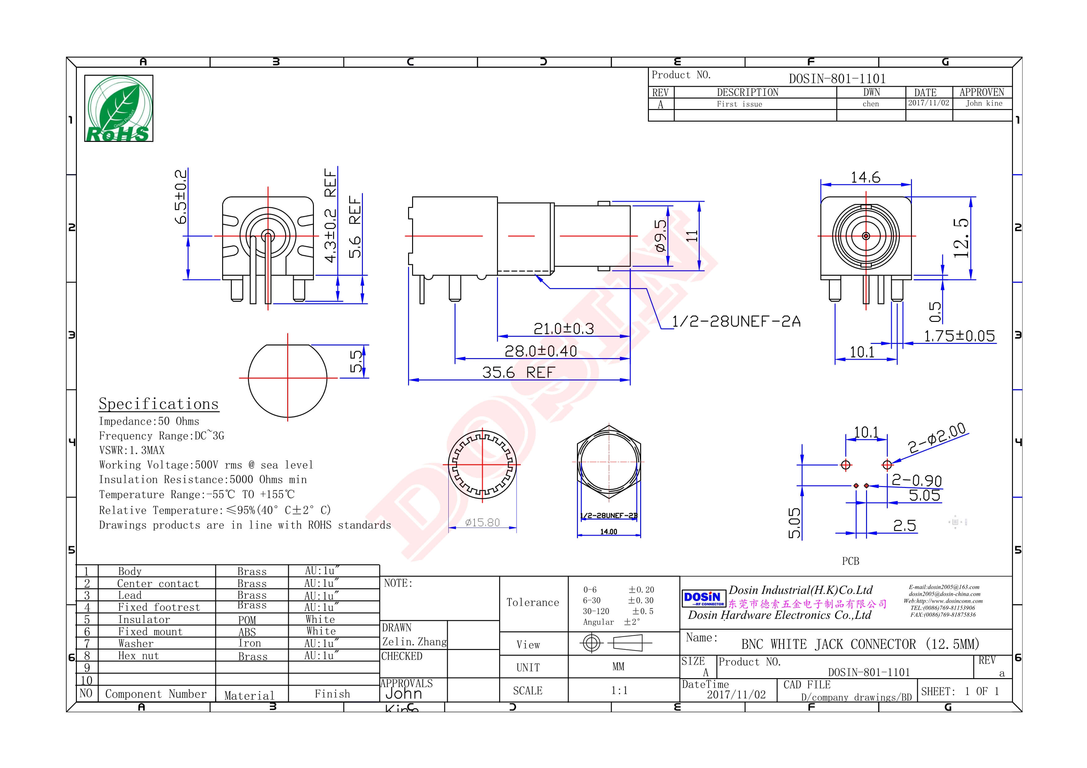 | 中心接触电阻 | ≦ 1.5 mΩ (Milliohms max.) |