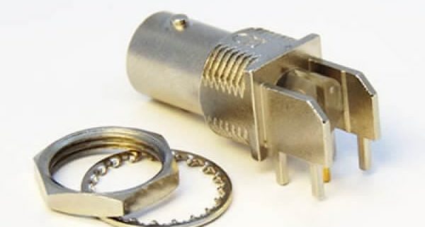 弯式穿墙BNC连接器母头PCB插板式穿墙8mm厚度75欧姆镀镍