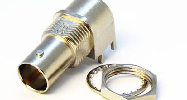 90度板端BNC连接器前锁穿墙穿孔式接PCB板