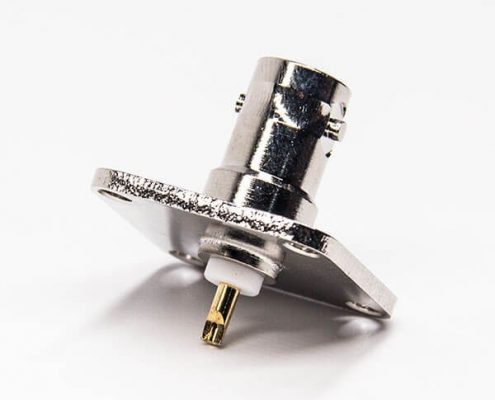 带法兰bnc连接器4孔法兰母头180度直式焊接式接线