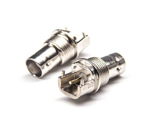 母头BNC弯式带针长螺纹镀镍卯压接PCB板
