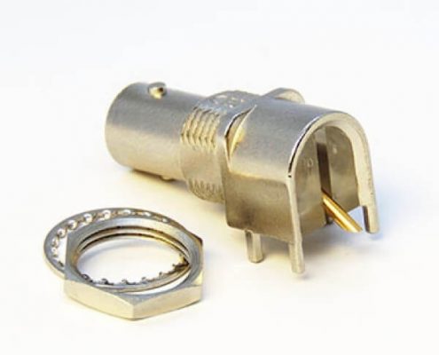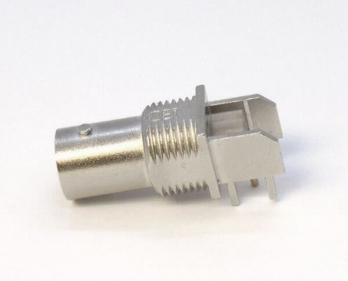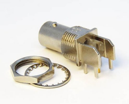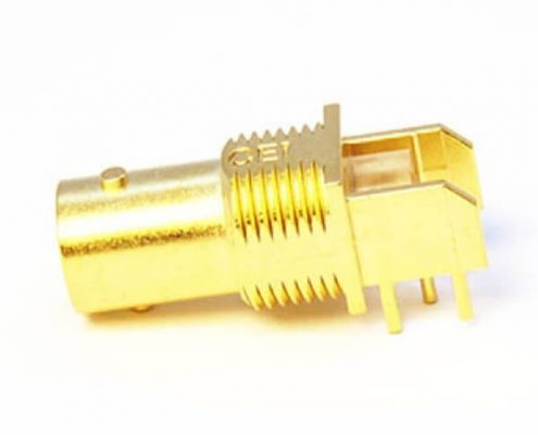 BNC连接器镀镍弯式母头穿孔式接PCB板厚度8mm