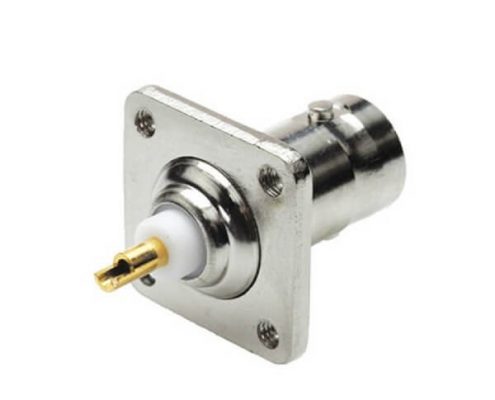 带法兰BNC连接器4孔母头前锁穿墙直式焊接式接线射频同轴连接器