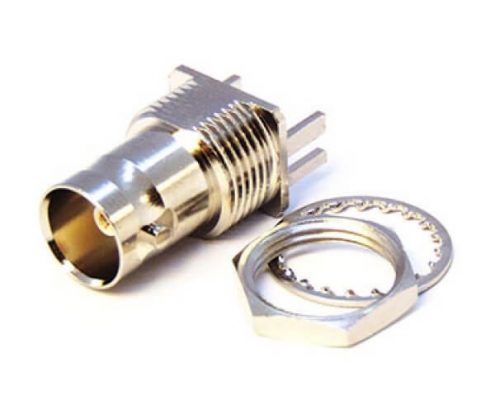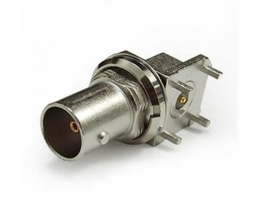 90度板端母头插板穿孔式接PBC板75欧姆镀镍BNC射频连接器