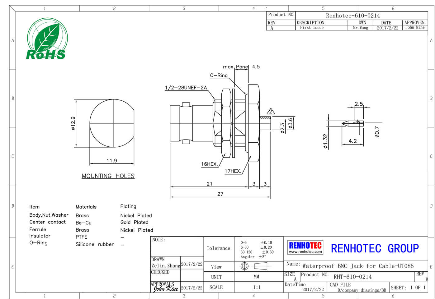 The post 直式穿墙BNC射频同轴直式母头连接器 appeared first on BNC接头网.