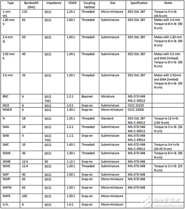 美国HP早在几年前就已推出频率已到110GHz的RF连接器。国内通用产品使用频率不超过40GHz。软电缆使用频率不超过10GHz,半刚电缆不超过20GHz。